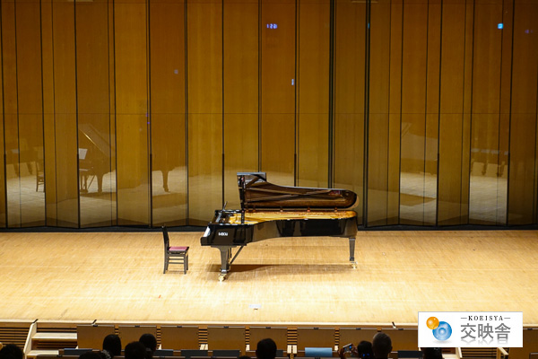 ステージは四分円状に近いカタチをしており、中央に置かれたピアノに自然と目線が集まります。間口は狭くないのですが、背景に向かって絞られている為、ピアノ1台でちょうど良い広さに感じます。落語会の開催にも使い勝手の良い広さだと思います。